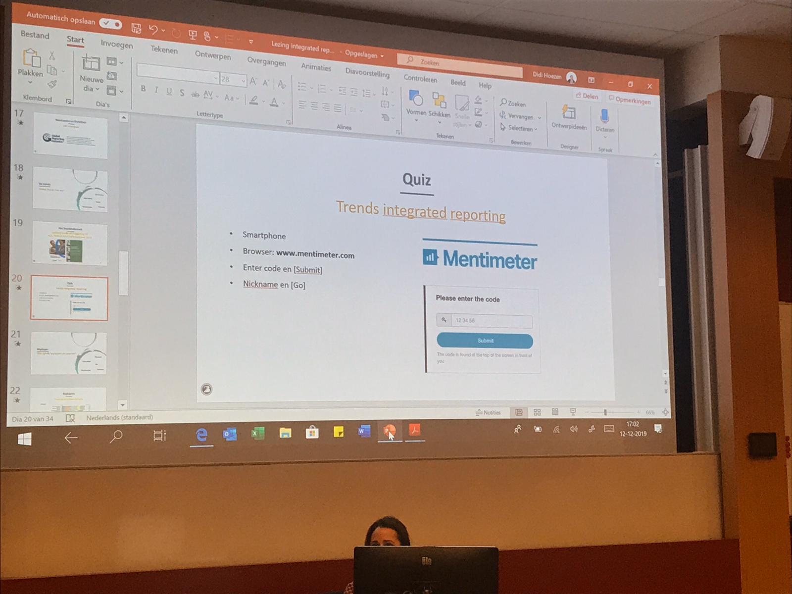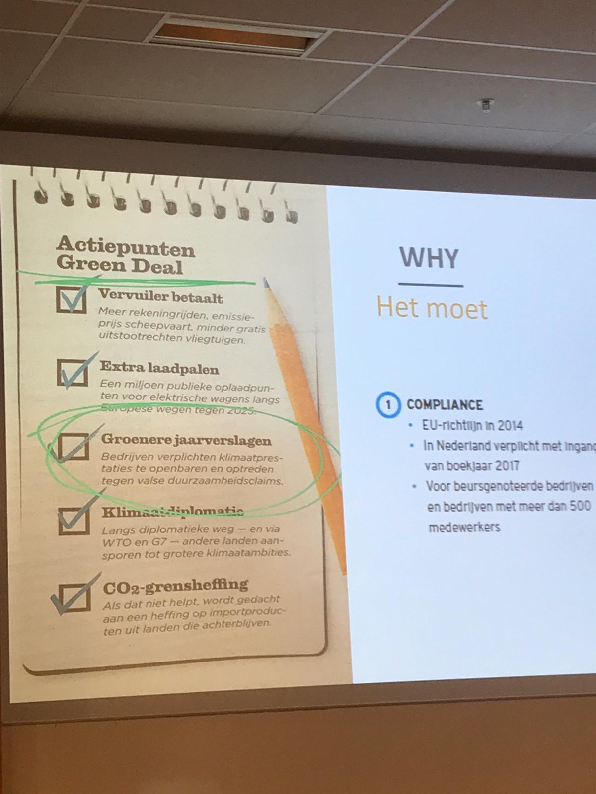 Diddi Hoezen van 2BHonest nam ons in 2 uur mee in de wereld van Integrated Reporting. Dit is een samenvattende rapportage waarin organisaties aangeven hoe zij duurzaam opereren en hoe strategie, governance, prestaties en vooruitzichten (maatschappelijke) waarde opleveren voor de korte, middellange en lange termijn (https://www.nba.nl/themas/externe-verslaggeving/integrated-reporting/)